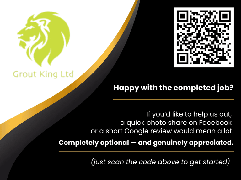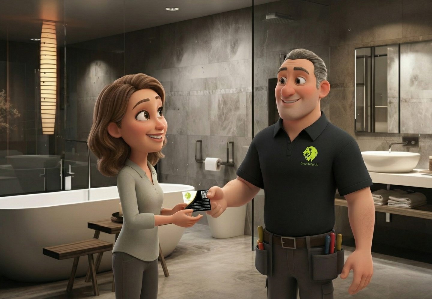 Scan the QR code in the Buddy Card to see the Grout King customer experience.