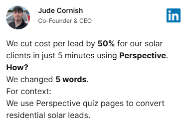 We are big fans of Perspective due to the conversion performance being exceptional.