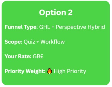1️⃣ Choose your preferred funnel option(s) (Option 2 recommended)