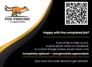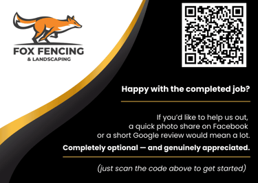 Scan the QR code in the Buddy Card to see the Fox Fencing & Landscaping customer experience.