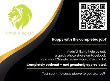 Scan the QR code in the Buddy Card to see the Grout King customer experience.