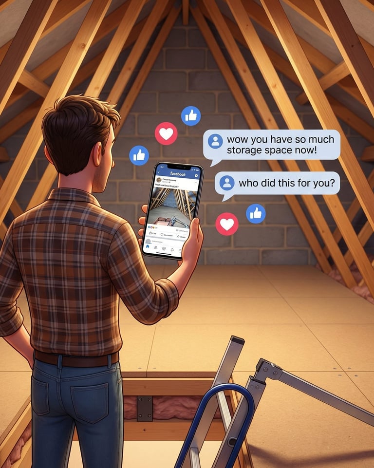 Buddy Card flips the script by prompting your happy customers to share photos of your projects instead of you - and all the fresh eyeballs sees your business at the centre.
